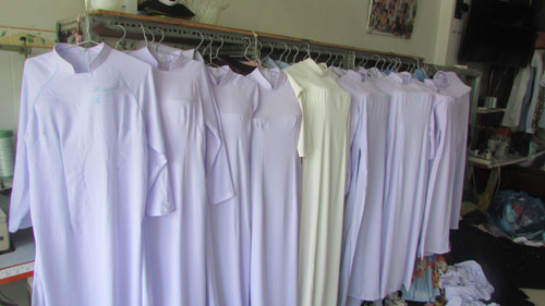 Sau này, lượng khách đặt may ngày càng nhiều, không thể đáp ứng hết nhu cầu nên chị chọn lọc, chủ yếu nhận may áo dài. Khi hỏi nguyên nhân vì sao yêu thích tà áo dài, chị nói: “Bởi đây là trang phục truyền thống của dân tộc. Hơn nữa, tôi rất thích mặc áo dài; đặc biệt, nhìn các chị em phụ nữ, học sinh mặc những chiếc áo do chính tay mình may thì càng vui thích hơn”.
