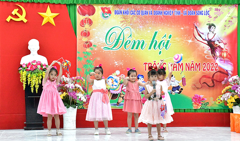 Tiết mục văn nghệ của thiếu nhi Trường Mẫu giáo Song Lộc tại chương trình “Đêm hội trăng rằm” năm 2022.