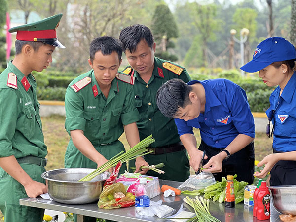 Cán bộ, chiến sĩ Trung đoàn BB1 và ĐVTN tham gia cuộc thi nấu ăn "Vua đầu bếp". Ảnh: CTV