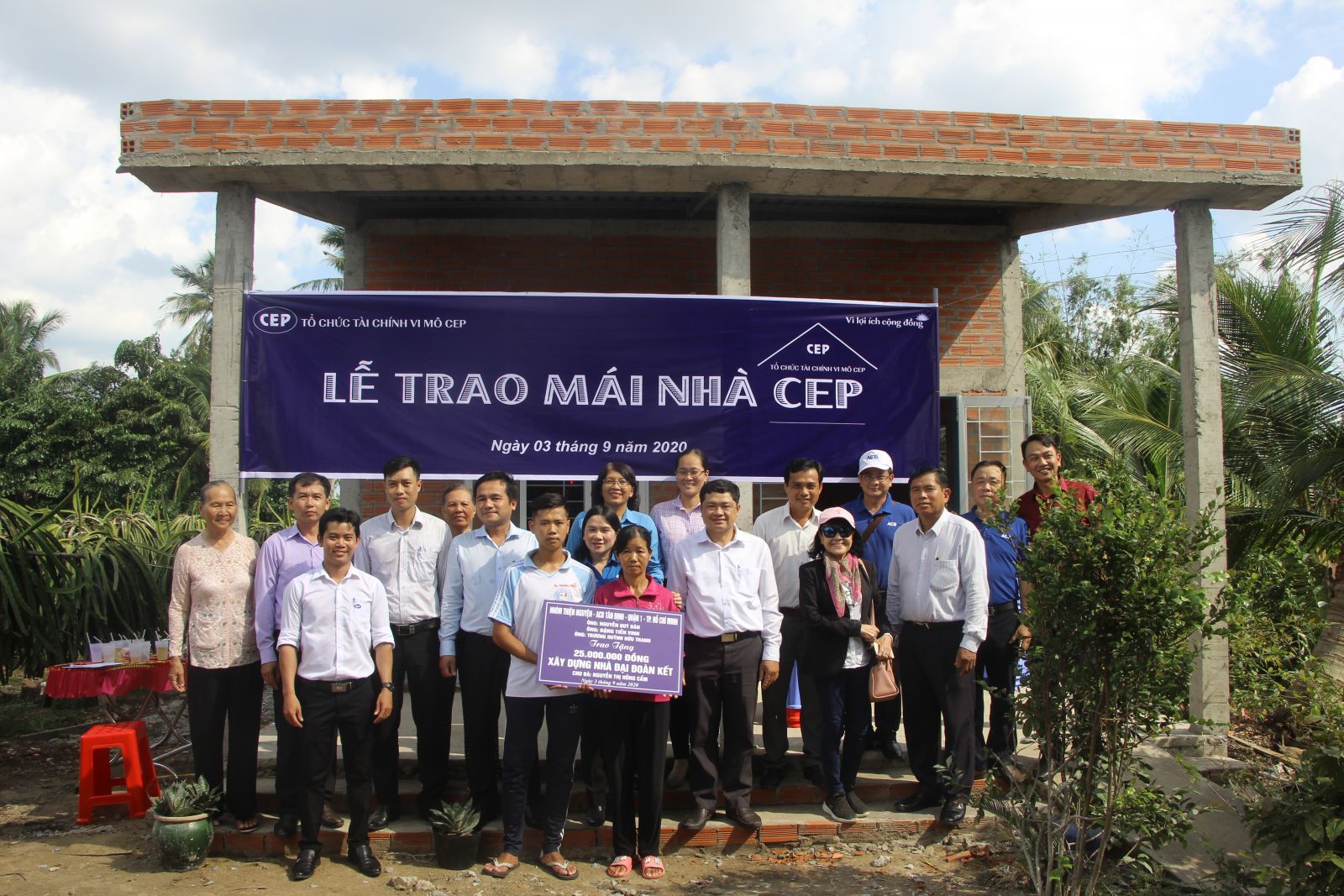 Căn nhà thứ nhất được trao cho hộ bà Nguyễn Thị Hồng Cẩm (ấp Vĩnh Xuân A, xã Dương Xuân Hội). Nhà được xây dựng với tổng kinh phí 85 triệu đồng. Trong đó, Tổ chức tài chính vi mô CEP hỗ trợ 60 triệu đồng, mạnh thường quân hỗ trợ 25 triệu đồng.