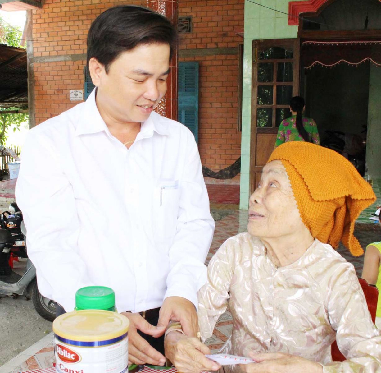 Thăm hỏi, tặng quà Mẹ Việt Nam Anh hùng Huỳnh Thị Cung (ấp 3, xã Tân Ðông, huyện Thạnh Hóa)