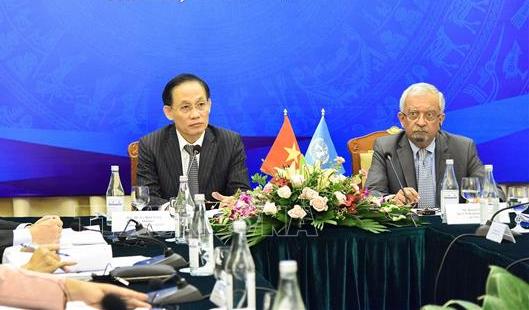 | Thứ trưởng Bộ Ngoại giao Lê Hoài Trung và Điều phối viên thường trú của LHQ tại Việt Nam, ông Kamal Malhotra đồng chủ trì phiên họp |