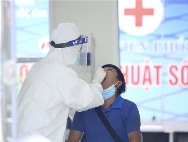 Lấy mẫu xét nghiệm COVID-19 toàn bộ nhân viên Bệnh viện Phổi Hà Nội. (Ảnh: Hoàng Hiếu/TTXVN)