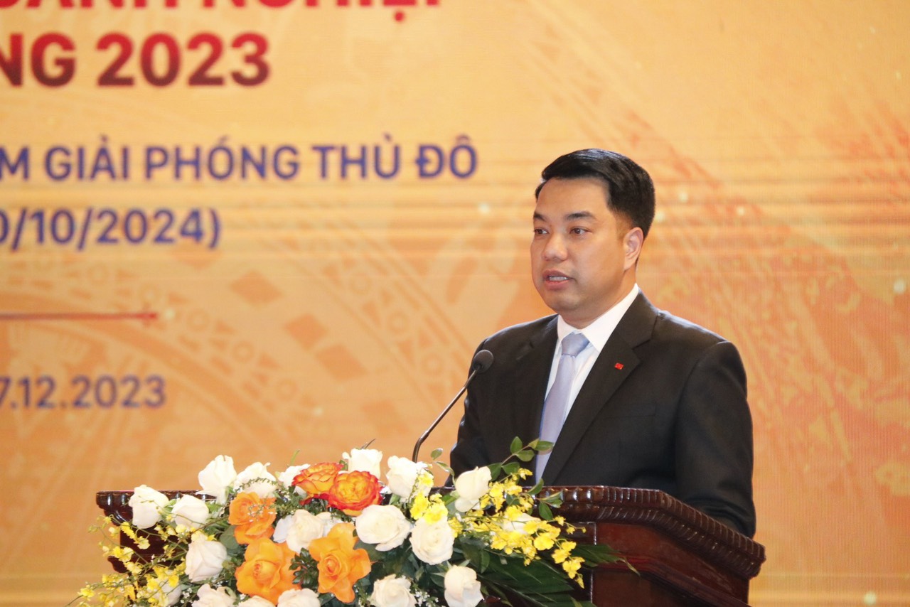 Phát biểu tại buổi lễ, Phó Chủ tịch UBND Thành phố Hà Nội Nguyễn Mạnh Quyền cho biết: "Với sự nỗ lực, cố gắng của cộng đồng doanh nghiệp và người dân, tình hình phát triển kinh tế - xã hội của thành phố Hà Nội trong năm 2023 đạt được những kết quả khá tích cực. Cụ thể, tổng sản phẩm trên địa bàn GRDP năm 2023 ước tăng 6,27%; Thu ngân sách nhà nước trên địa bàn năm 2023 ước đạt trên 400.000 tỷ đồng, bằng 113,5% dự toán năm và tăng 20% so với năm 2022; Tổng mức bán lẻ hàng hóa và doanh thu dịch vụ tiêu dùng ước đạt 776.000 tỷ đồng, tăng 10,4% so với năm 2022; Thu hút đầu tư nước ngoài tăng khá, ước đạt 2,9 tỷ USD, tăng 62% so với năm 2022... Cộng đồng doanh nghiệp, doanh nhân là lực lượng sản xuất chủ yếu của nền kinh tế, đóng vai trò hết sức quan trọng trong sự nghiệp xây dựng và phát triển của Thành phố qua các thời kỳ; tiến trình phát triển của đội ngũ doanh nhân gắn bó mật thiết với công cuộc đổi mới của Thủ đô. “Với thông điệp “Doanh nghiệp - động lực phát triển kinh tế của đất nước”, trong những năm qua, Hà Nội đã chứng kiến cộng đồng doanh nghiệp phát triển hùng hậu với hơn 373.000 doanh nghiệp. Cùng với sự phát triển mạnh mẽ về số lượng, các doanh nghiệp và doanh nhân đã thể hiện vai trò và đóng góp quan trọng thúc đẩy sự chuyển mình và cất cánh của nền kinh tế Thành phố".