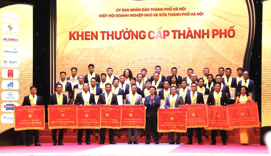 | Lãnh đạo thành phố Hà Nội trao tặng Cờ thi và Bằng khen cho các doanh nhân, doanh nghiệp có thành tích xuất sắc, có đóng góp tích cực vào sự phát triển kinh tế - xã hội của Thủ đô . |