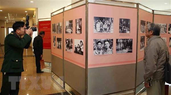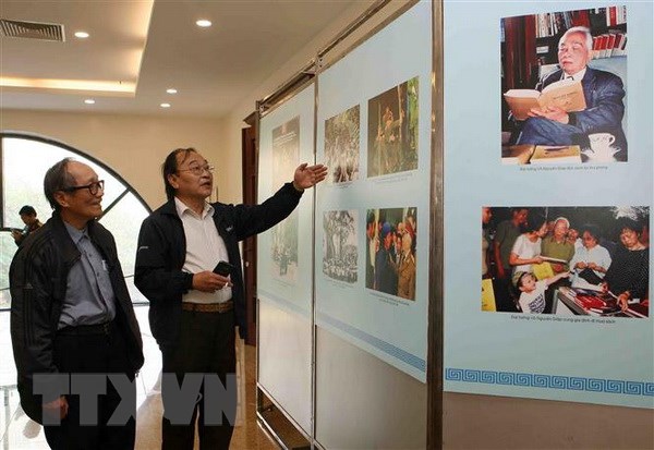 Đại biểu dự hội thảo xem trưng bày tư liệu về Đại tướng Võ Nguyên Giáp. (Ảnh: Thanh Tùng/TTXVN)