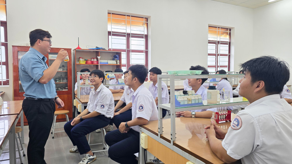 Thầy Lê Trọng Đức hướng dẫn thí nghiệm cho học sinh