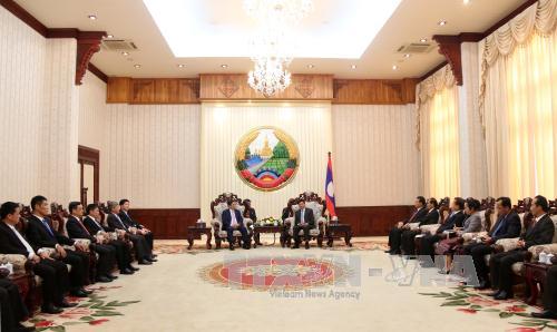 Tổng Bí thư, Chủ tịch Lào tiếp Đoàn đại biểu cấp cao Ban Tổ chức Trung ương Đảng ta