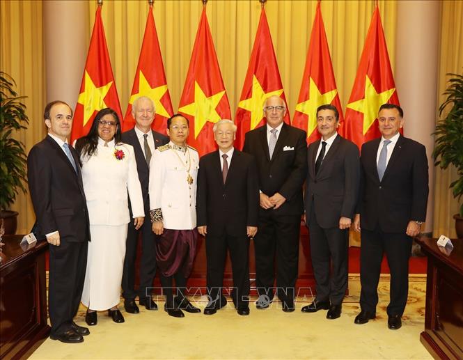 Thay mặt Nhà nước và nhân dân Việt Nam, Tổng Bí thư, Chủ tịch nước Nguyễn Phú Trọng nhiệt liệt chào mừng các Đại sứ đặc mệnh toàn quyền của Vương quốc Campuchia, Thuỵ Sỹ, Cộng hòa Bolivia Venezuela, Cộng hòa Hy Lạp, Đại Công quốc Luxembourg, Cộng hoà Paraguay, Vương quốc Hashemite Jordan tại Việt Nam.