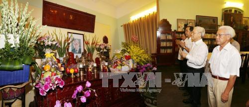 Tổng Bí thư Nguyễn Phú Trọng dâng hương tưởng niệm Tổng Bí thư Lê Duẩn tại nhà riêng số 6, phố Hoàng Diệu, Hà Nội. Ảnh: Trí Dũng –TTXVN