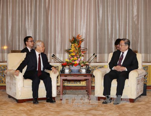 Tổng Bí thư Nguyễn Phú Trọng hội kiến với Chủ tịch Chính Hiệp Trung Quốc Du Chính Thanh