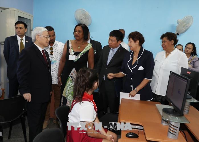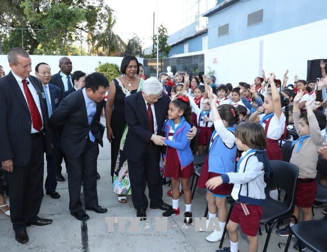 Tổng Bí thư mong rằng, nhà trường sẽ luôn dạy tốt và học tốt, giáo dục, rèn luyện các cháu trở thành những chủ nhân tương lai xứng đáng của đất nước, kế tục sự nghiệp của các thế hệ đi trước và không ngừng vun đắp cho mối quan hệ đoàn kết thủy chung Việt Nam – Cuba.