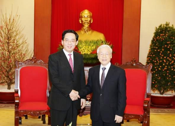 Tổng Bí thư Nguyễn Phú Trọng và Đại sứ Hồng Tiểu Dũng.