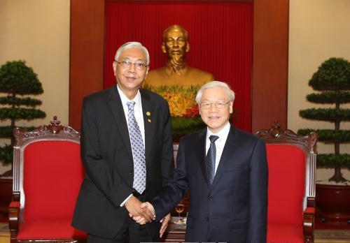 Tổng Bí thư Nguyễn Phú Trọng nhiệt liệt hoan nghênh và cho rằng chuyến thăm cấp Nhà nước Việt Nam của Tổng thống Mi-an-ma Tin Chô có ý nghĩa quan trọng trong bối cảnh hai nước đều có ban lãnh đạo mới, góp phần mở ra một giai đoạn mới trong quan hệ hai nước. Tổng Bí thư chúc mừng Chính phủ và nhân dân Mi-an-ma đã đạt được nhiều thành tựu to lớn trong cải cách kinh tế, thúc đẩy hòa hợp dân tộc và nâng cao vị thế trong khu vực và trên thế giới; khẳng định chính sách nhất quán của Việt Nam là coi trọng tăng cường và mở rộng quan hệ hữu nghị và hợp tác nhiều mặt với Mi-an-ma. Tổng Bí thư cho rằng việc chia sẻ nhiều điểm tương đồng trong lịch sử đấu tranh giải phóng dân tộc cũng như trong việc triển khai các chính sách cải cách kinh tế gần đây là nền tảng quan trọng để hai nước mở rộng và tăng cường hơn nữa quan hệ hữu nghị và hợp tác nhiều mặt; mong muốn hai nước tiếp tục duy trì và phát huy cao nhất hiệu quả của các cơ chế hợp tác song phương, đồng thời đẩy mạnh hợp tác kinh tế-thương mại và đầu tư, tăng cường giao lưu nhân dân và hợp tác giữa các địa phương nhằm bổ trợ và tăng cường kết nối giữa hai nước bảo đảm hai nước cùng phát triển./.