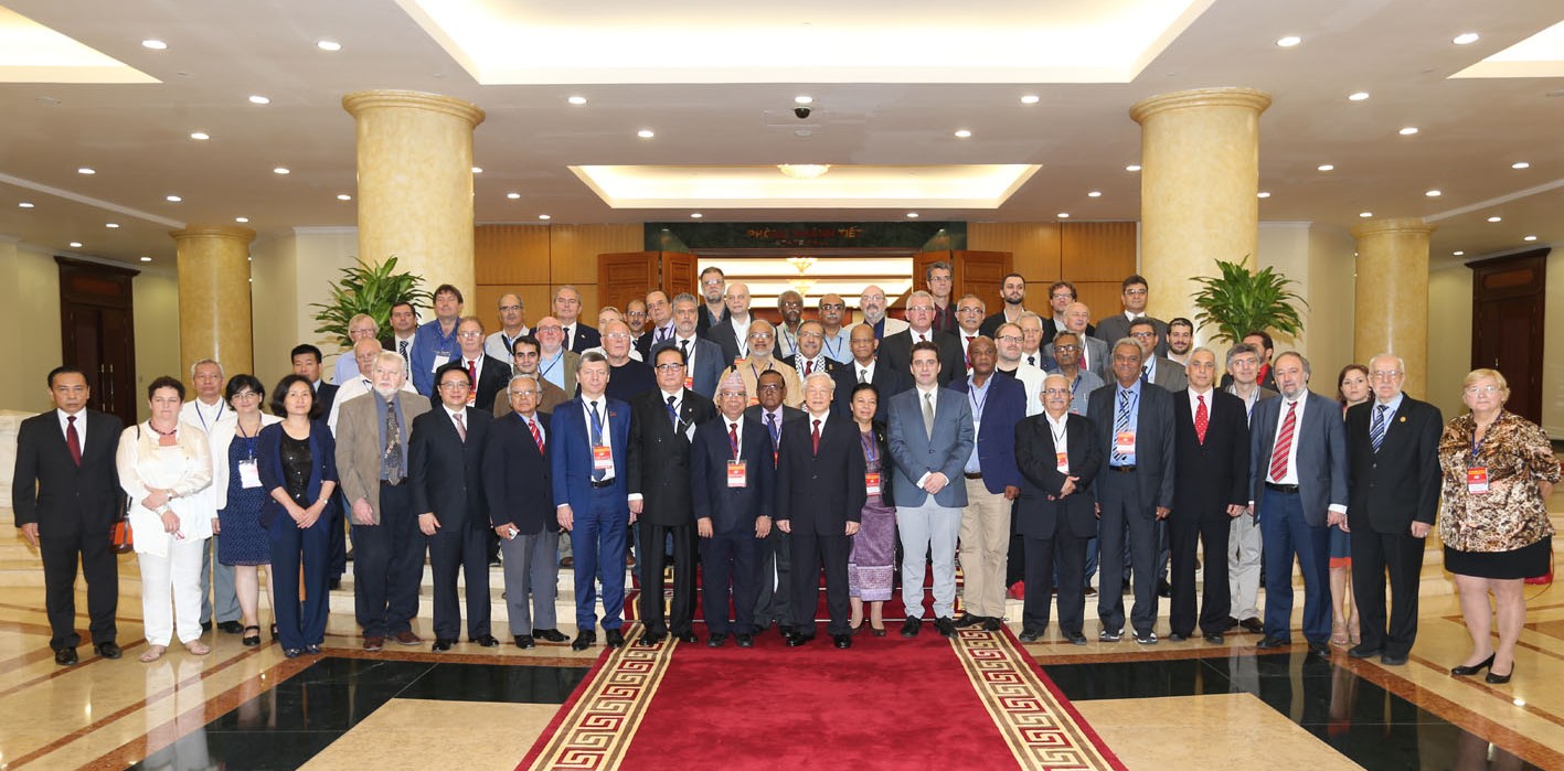 Tổng Bí thư Nguyễn Phú Trọng nhiệt liệt chào mừng đại diện các đảng cộng sản và công nhân đến tham dự Cuộc gặp lần thứ 18 tại Việt Nam, bày tỏ vui mừng được gặp gỡ những người bạn thân thiết, thủy chung, luôn kề vai sát cánh cùng nhân dân Việt Nam trong mọi giai đoạn của cách mạng Việt Nam.