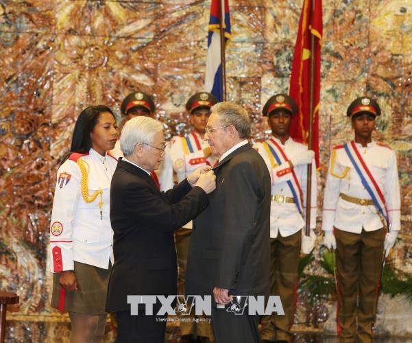 Chiều 29/3 (giờ địa phương), tại Cung Cách mạng ở Thủ đô La Habana, Tổng Bí thư Nguyễn Phú Trọng thay mặt lãnh đạo Đảng, Nhà nước, đã trao Huân chương Sao vàng tặng đồng chí Raul Castro Ruz (Ra-un Ca-xtơ-rô Rút), Bí thư thứ nhất Ban Chấp hành Trung ương Đảng Cộng sản Cuba, Chủ tịch Hội đồng Nhà nước và Hội đồng Bộ trưởng Cuba.