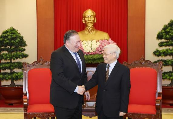 Tổng Bí thư Nguyễn Phú Trọng hoan nghênh và đánh giá cao ý nghĩa chuyến thăm Việt Nam của Ngoại trưởng Mai-cơ Pôm-pê-ô trong bối cảnh hai nước đang có những bước phát triển tốt đẹp trong quan hệ hợp tác nhiều mặt thời gian qua.