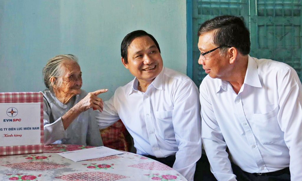 Chiều 20/11, Chủ tịch kiêm Tổng Giám đốc Công ty Điện lực Miền Nam - Nguyễn Văn Hợp cùng lãnh đạo Công ty Điện lực Long An đến thăm và tặng quà Mẹ Việt Nam Anh hùng - Ngô Thị Hiền, ngụ xã Bình Tịnh, huyện Tân Trụ.