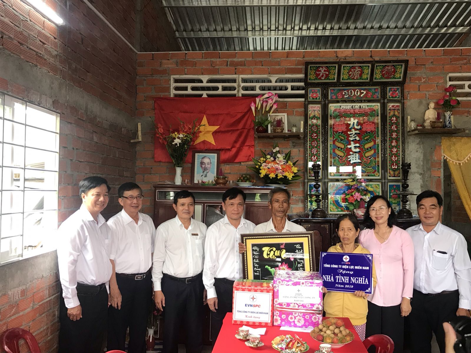 04 căn nhà tình nghĩa trao cho các gia đình chính sách tại hai xã Tân Hòa, Tân Lập của huyện Tân Thạnh và 01 căn tại xã Thạnh Trị, thị xã Kiến Tường. Mỗi căn có trị giá 50 triệu đồng. Trong đó, EVNSPC hỗ trợ 03 căn còn lại 02 căn do ngành điện vận động công ty cổ phần Thiết bị điện (THIBIDI) hỗ trợ.