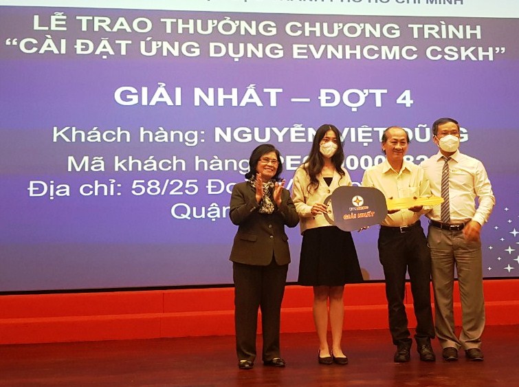 | Trao thưởng hai đợt 3 và 4 cho các khách hàng tham gia Chương trình “Khách hàng cài đặt ứng dụng EVNHCMC CSKH”. |