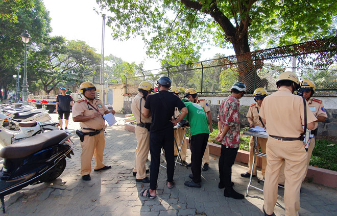 | CSGT ra quân tổng kiểm soát phương tiện giao thông đường bộ. Ảnh: Vũ Phượng. |