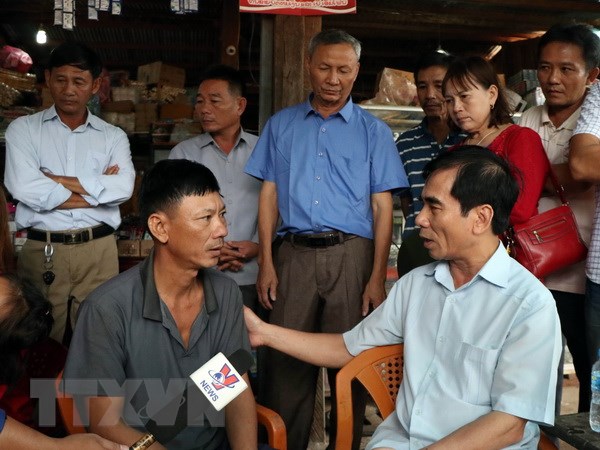 Ông Đào Văn Hiếu, Tổng Lãnh sự quán Việt Nam tại 4 tỉnh Nam Lào thăm, động viên các gia đình bị ảnh hưởng sau sự cố vỡ đập thủy điện Xe Pian-Xe NamNoy. (Ảnh: Quang Thái/TTXVN)