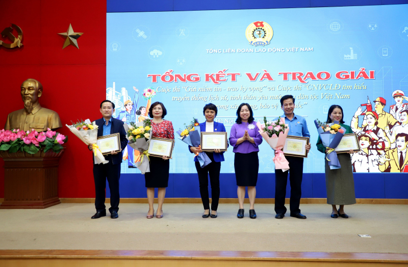 *Hội nghị cũng tiến hành tổng kết và trao giải 2 cuộc thi trực tuyến do Tổng LĐLĐ Việt Nam tổ chức nhằm triển khai đợt sinh hoạt chính trị chào mừng Đại hội XIII Công đoàn Việt Nam.