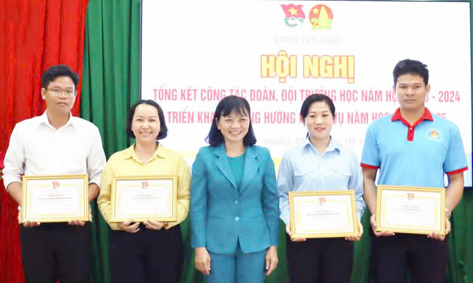 Giáo viên Tổng phụ trách Đội Trường THCS Nguyễn Văn Chính (xã Phước Lý, huyện Cần Giuộc) - Huỳnh Thị Tiểu Muội (thứ 2, phải qua) nhận nhiều bằng khen, giấy khen trong công tác Đội và phong trào thiếu nhi cũng như trong học tập và làm theo tư tưởng, đạo đức, phong cách Hồ Chí Minh