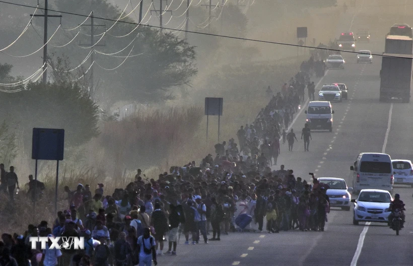Người di cư trong hành trình tới Mỹ, tại khu vực Arriaga, bang Chiapas, Mexico, ngày 8/1/2024. (Ảnh: AFP/TTXVN)