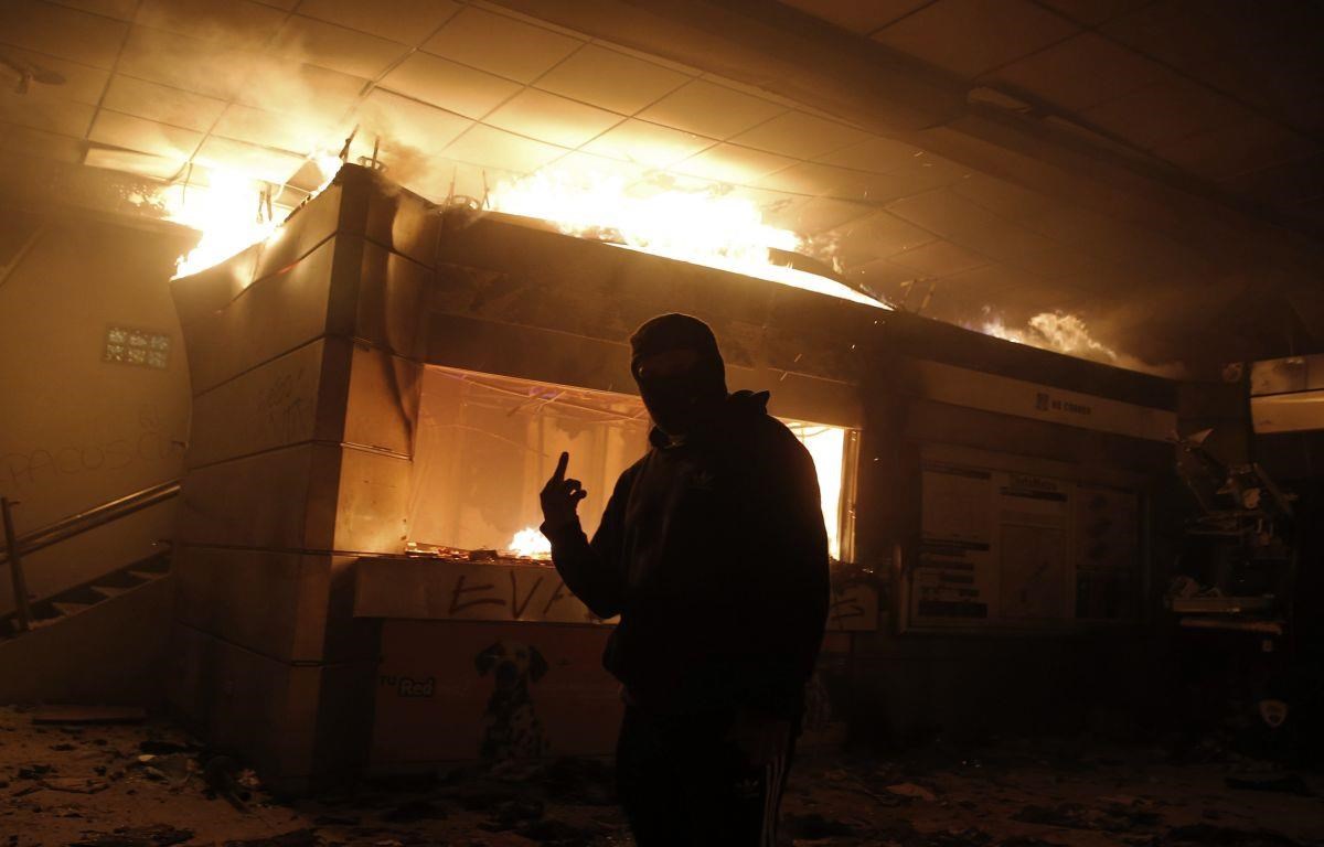 Người biểu tình đốt phá một ga tàu điện ngầm. (Nguồn: AP)
