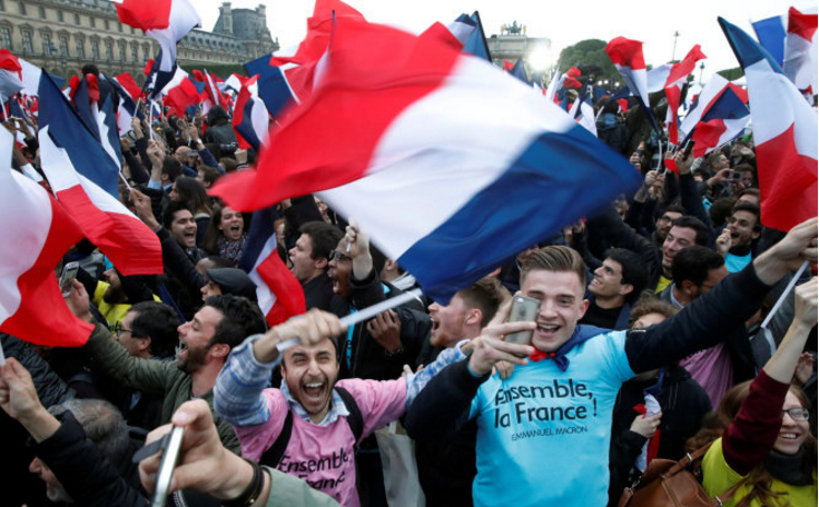 Người ủng hộ ông Macron ăn mừng ở Paris ngày 07/5 - Ảnh: Reuters