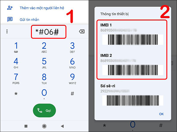 Kiểm tra số IMEI theo cú pháp *#06#: Chi tiết cách thực hiện như sau: Mở ứng dụng gọi điện thoại > nhập cú pháp *#06# > nhấn phím Gọi > xem thông tin IMEI trả về máy.