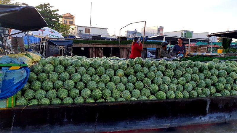 | Một góc chợ nổi bán hàng nông sản ở TP Cần Thơ. (Ảnh: K.V) |