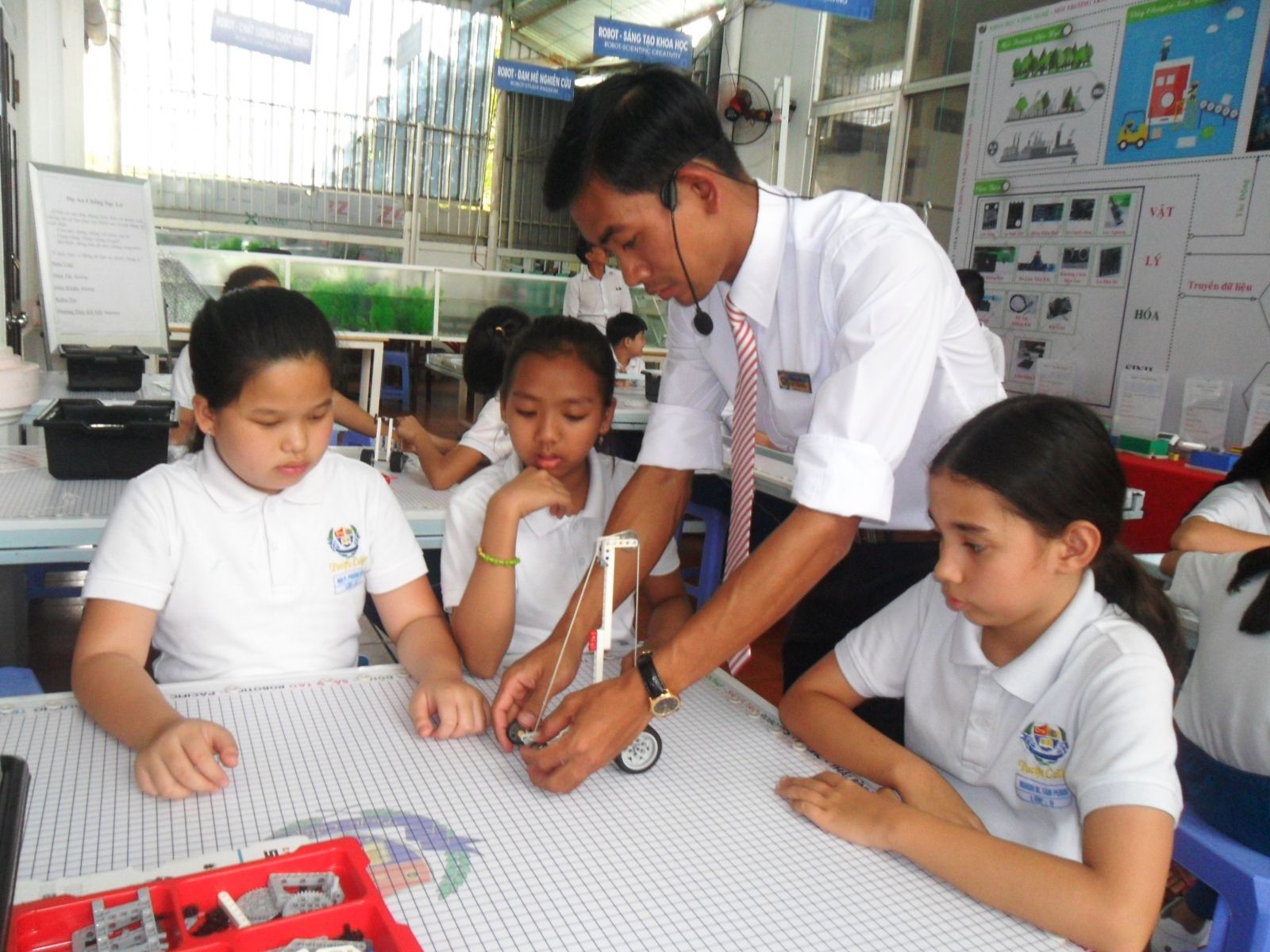 Giờ học thực hành của thầy trò Trường Phổ thông Thái Bình Dương. ảnh: T.Hằng.