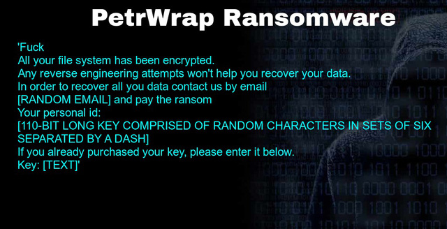 Mã độc Petrwrap là một mã độc tống tiền (Ransomware) được phát triển từ mã độc Petya vừa mới tấn công rất nhiều tổ chức trên thế giới cuối tháng 6 vừa qua.