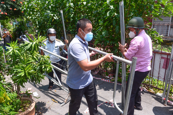 Lực lượng chức năng tháo gỡ các rào chắn ở TP.HCM - Ảnh: QUANG ĐỊNH