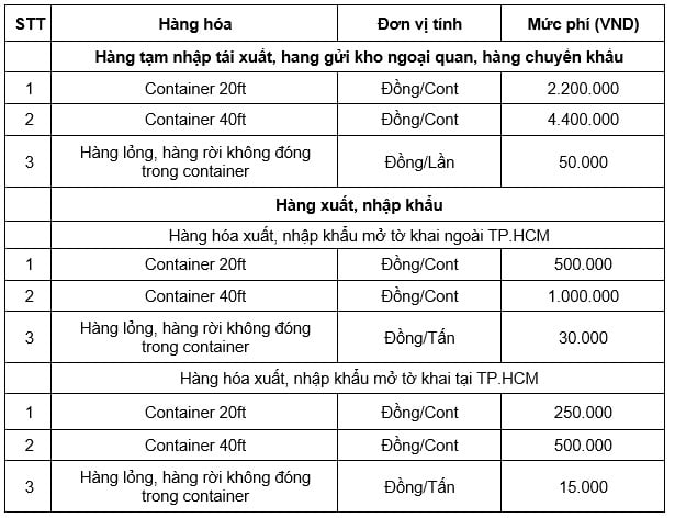 | Biểu phí thu thử nghiệm tại TP.HCM |