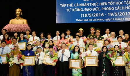 Nhân dịp này, Thành ủy TP.Hồ Chí Minh đã biểu dương 162 tập thể và 240 cá nhân đã thực hiện tốt việc học tập và làm theo tư tưởng, đạo đức, phong cách Hồ Chí Minh năm 2016 – 2017. Đây là những tập thể, cá nhân đã có nhiều thành tích xuất sắc, đi đầu trong sáng tạo, đổi mới, góp phần không nhỏ vào sự phát triển của thành phố.