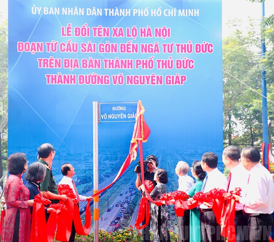 | Các đại biểu thực hiện nghi thức đổi tên Xa lộ Hà Nội đoạn từ cầu Sài Gòn đến ngã tư Thủ Đức trên địa bàn TP Thủ Đức thành đường Võ Nguyên Giáp (Ảnh:thanhuytphcm) |
