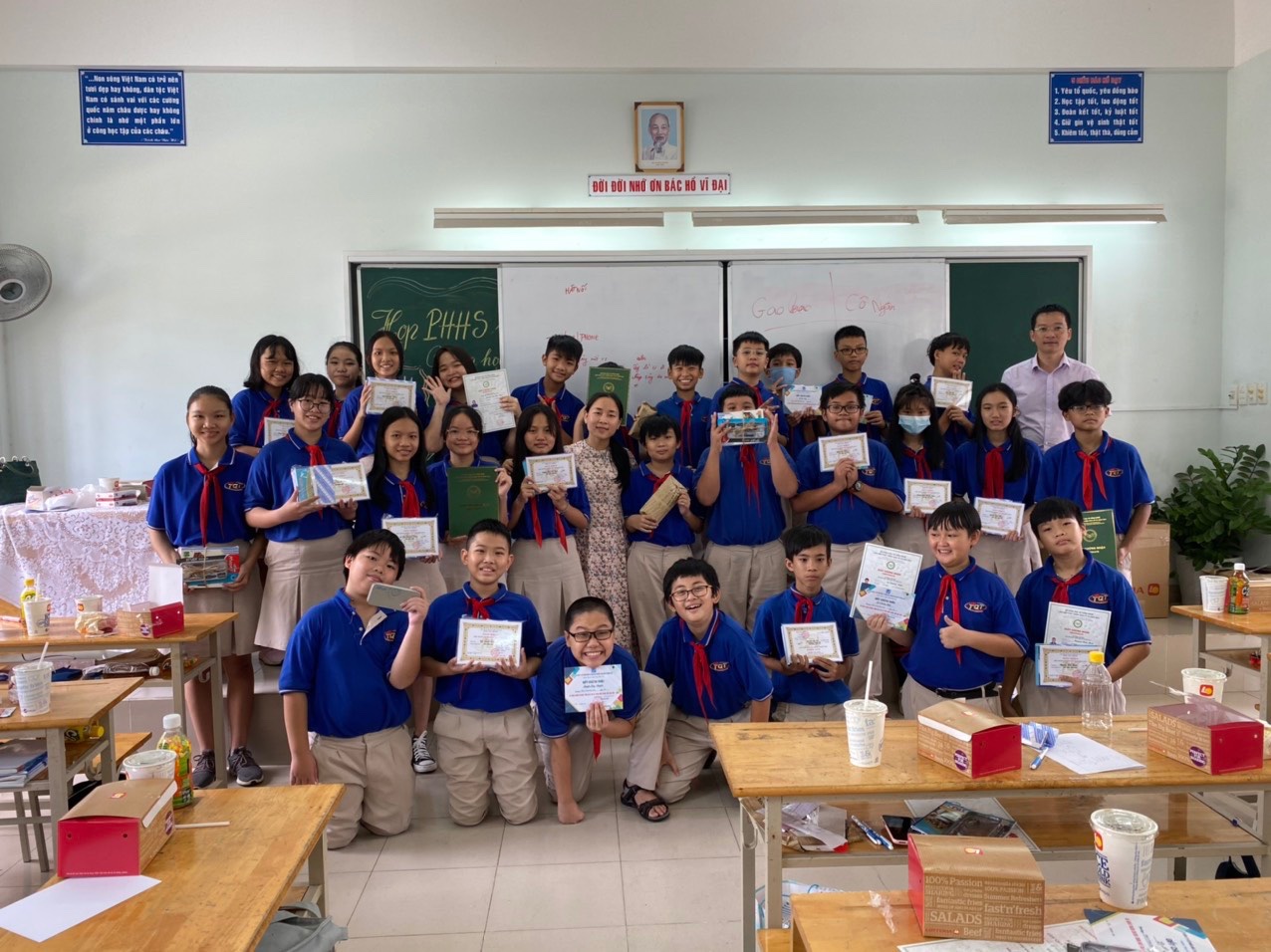 | Các em học sinh nhận phần thưởng cuối năm trước đợt dịch COVID-19. (Ảnh minh họa: Chi Mai) |