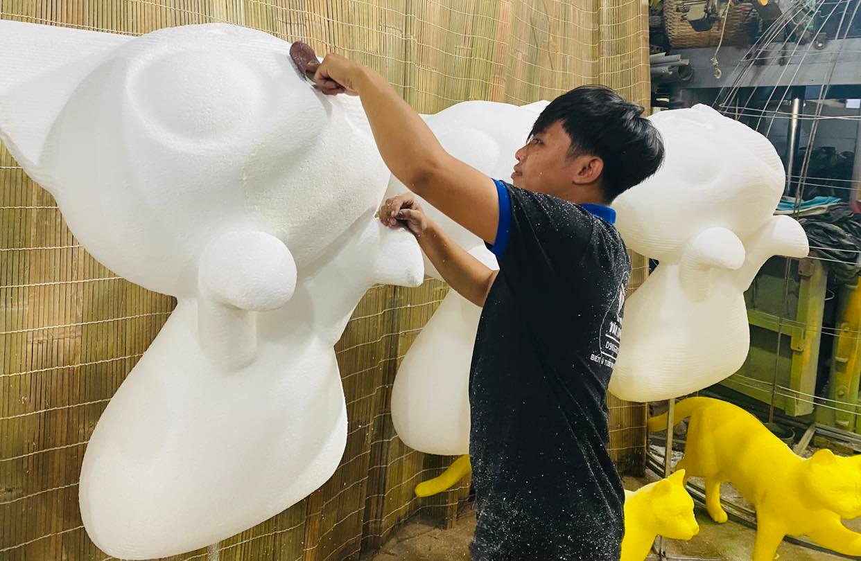 Nghệ nhân Văn Tòng, người chịu trách nhiệm công việc thi công các linh vật của Đường hoa Tết 2023, chia sẻ: “Hơn một tháng qua, từ khi bắt tay thực hiện, đến nay, 40 công nhân vẫn đang gấp rút hoàn thành các công đoạn còn lại. Đến thời điểm này, các mô hình, linh vật sẽ trưng bày ở cổng chính đường hoa đã hoàn thành được 90%, các phần còn lại đạt khoảng 75%. Chúng tôi đang nỗ lực hoàn tất các công việc còn lại, công nhân có thể sẽ tăng ca để kịp tiến độ”.