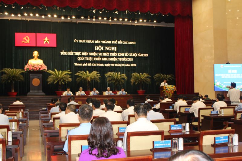 | Hội nghị tổng kết thực hiện nhiệm vụ phát triển kinh tế - xã hội năm 2023; quán triệt, triển khai nhiệm vụ năm 2024 của UBND TP Hồ Chí Minh. (Ảnh: Minh Dung) |