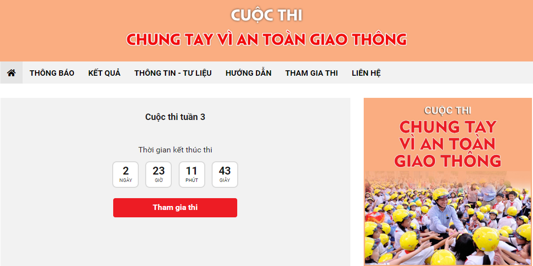 Cuộc thi được tổ chức theo hình thức trắc nghiệm trực tuyến hằng tuần trên Báo điện tử Đảng Cộng sản Việt Nam, mạng xã hội VCNet và các báo/tạp chí điện tử, trang/cổng thông tin điện tử của các cơ quan, đơn vị, địa phương dẫn đường link liên kết với Cuộc thi. Đường link Cuộc thi: atgt.dangcongsan.vn.