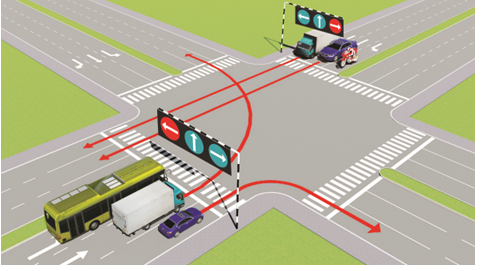 Câu 4: Các xe đi theo hướng mũi tên, xe nào vi phạm quy tắc giao thông?