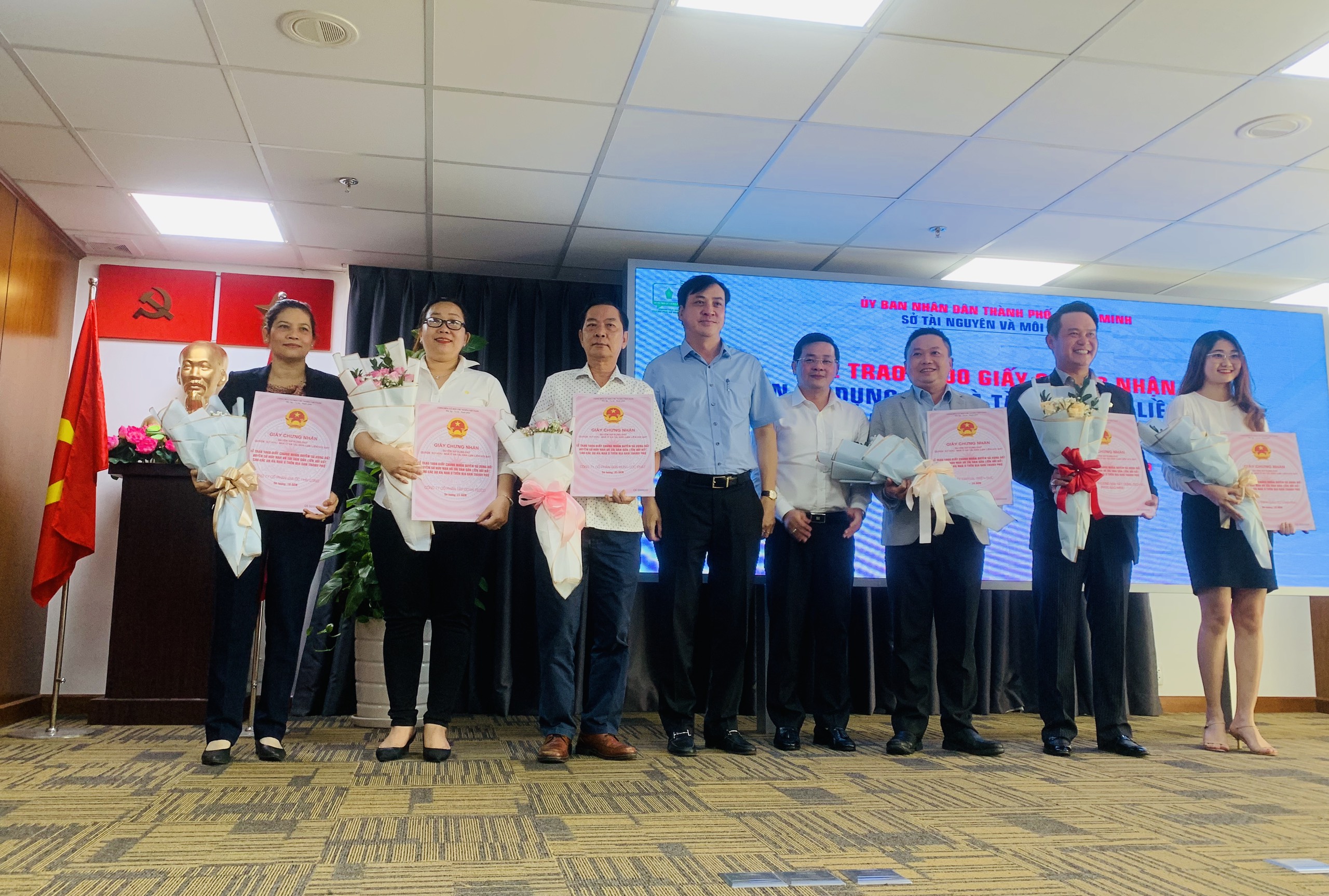 Chiều ngày 15/9, Sở Tài nguyên và Môi trường TP Hồ Chí Minh tổ chức lễ trao 1.000 giấy chứng nhận cho các dự án nhà ở trên địa bàn TP cho 16 đơn vị dự án đã hoàn chỉnh đầy đủ các quy trình, thủ tục đầu tư, xây dựng dự án theo đúng quy định.
