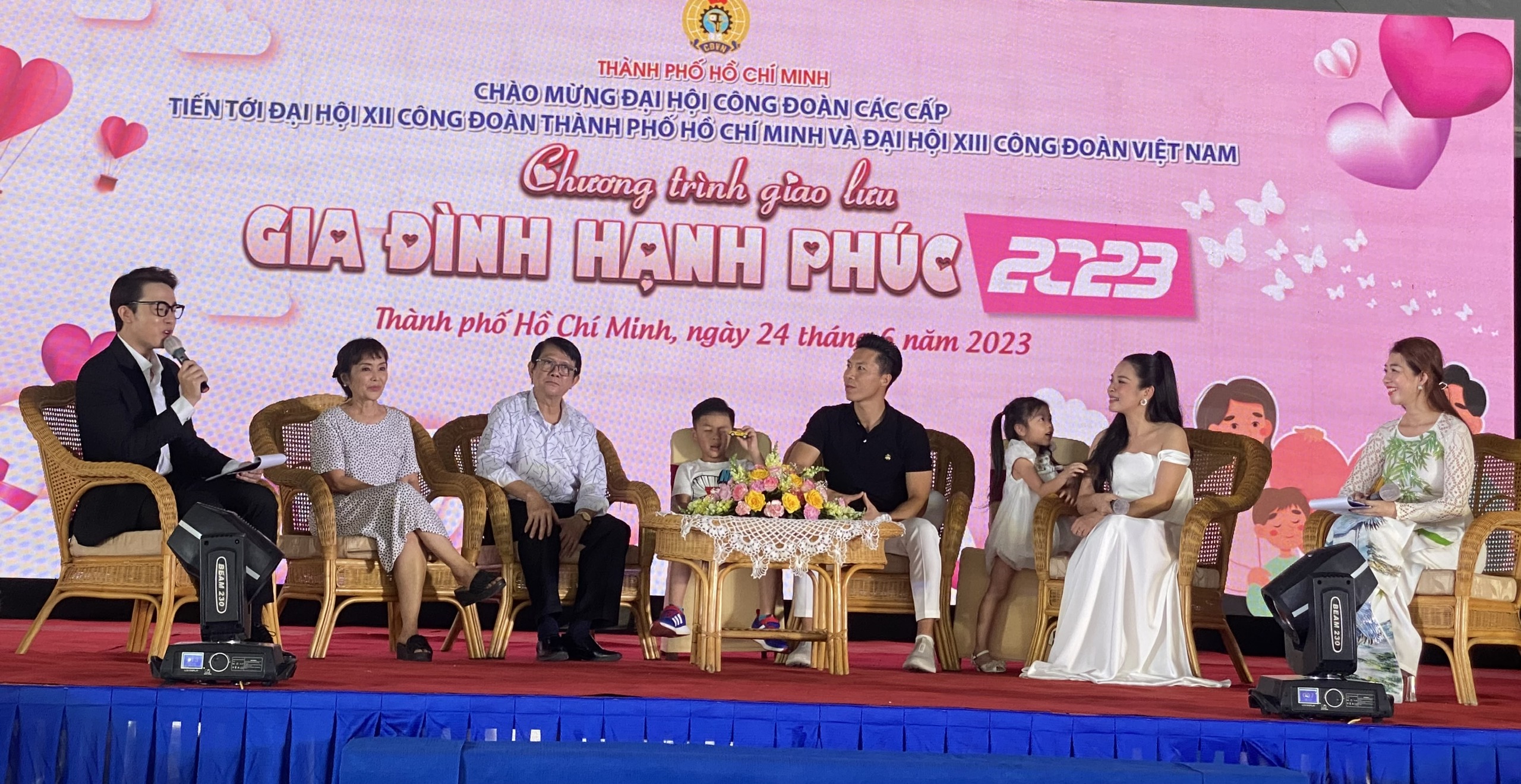 Đặc biệt, trong Chương trình giao lưu “Gia đình hạnh phúc” kỷ niệm Ngày Gia đình Việt Nam 28/6 năm nay, các gia đình CNVC-LĐ đã giao lưu với gia đình ca sĩ Ngọc Mai – nghệ sĩ xiếc Quốc Nghiệp và gia đình nghệ sĩ hài Bảo Trí – Kim Tuyết.