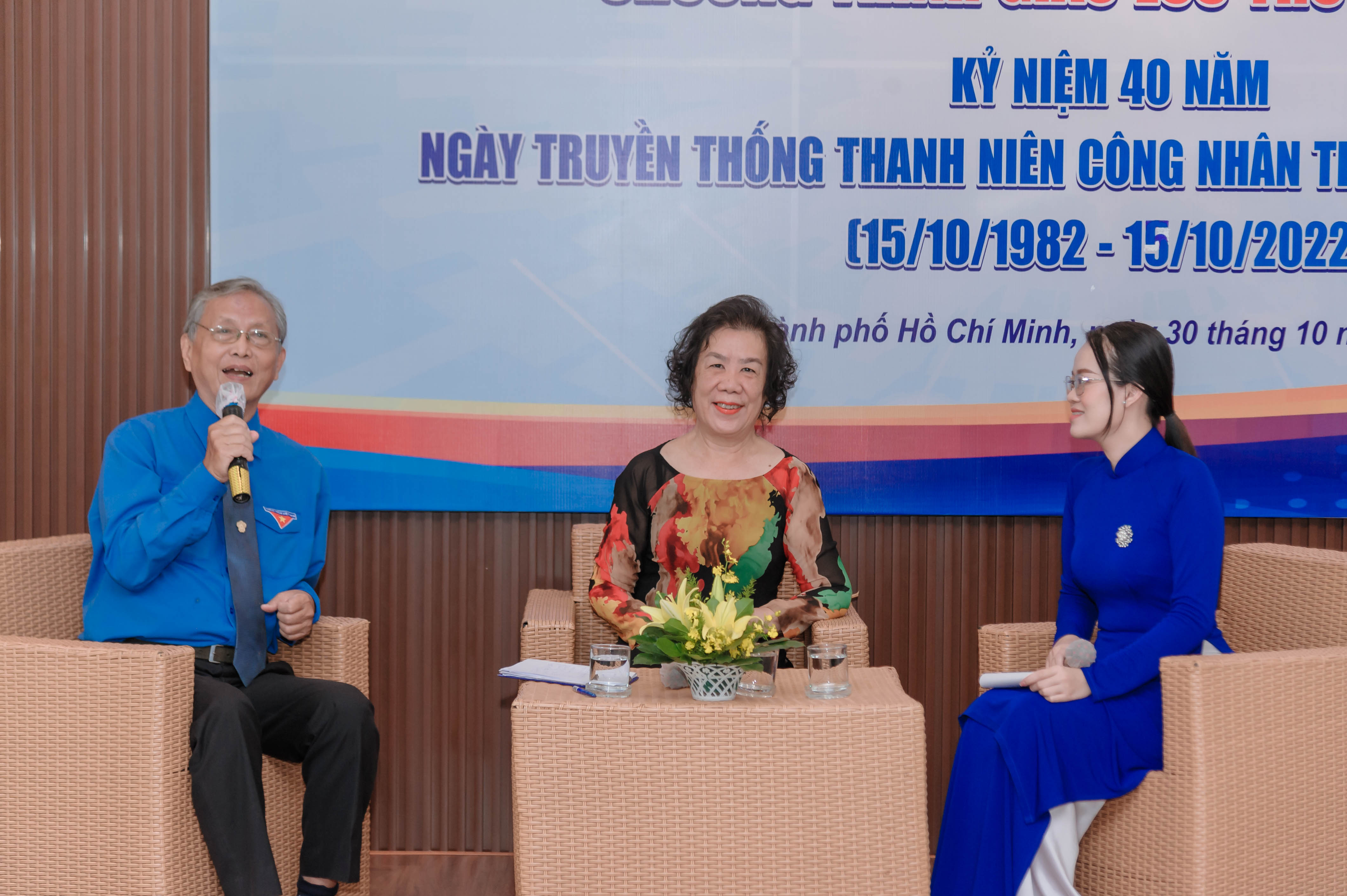 | Các đại biểu giao lưu cùng các đồng chí lão thành cách mạng, các đồng chí là cựu cán bộ Thành Đoàn các thời kỳ tại Phòng Truyền thống Đoàn TNCS Hồ Chí Minh Thành phố Hồ Chí Minh. |