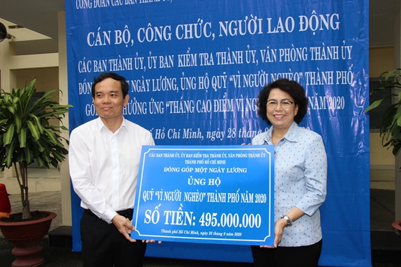 Chào mừng đại hội Đảng các cấp tiến tới Đại hội đại biểu toàn quốc lần thứ XIII của Đảng, hưởng ứng phát động của Ủy ban MTTQ Việt Nam TP Hồ Chí Minh về tháng cao điểm 'Vì người nghèo', ngày 28/9, Toàn thể cán bộ, công chức, nhân viên đang công tác tại các ban Thành ủy TP, cơ quan Ủy ban Kiểm tra Thành ủy, Văn phòng Thành ủy và 4 doanh nghiệp kinh tế Đảng trực thuộc Văn phòng Thành ủy đã đóng góp ủng hộ 1 ngày lương vào Quỹ "Vì người nghèo” TP. Tổng số tiền đã đóng góp ủng hộ lên tới gần 500 triệu đồng.