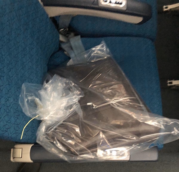 | Túi xách với nhiều tài sản giá trị hành khách bỏ quên trên máy bay do nhân viên chụp lại (Ảnh: VNA). |