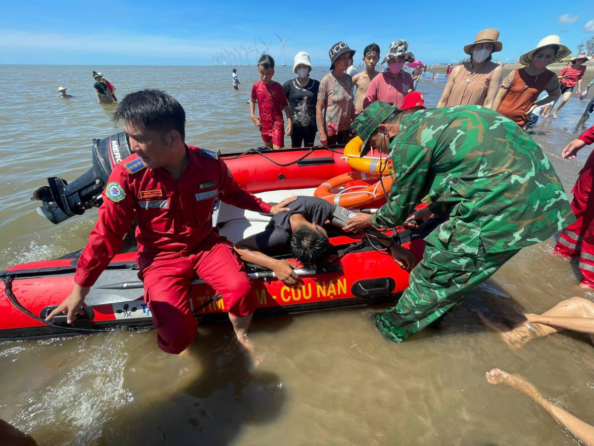Theo đó, vào lúc 9 giờ 50 cùng ngày, tổ cứu nạn cứu hộ tại biển Ba Động phát hiện, ứng cứu kịp thời 2 thiếu niên đuối nước là L.P.L (15 tuổi) và N.H.K (15 tuổi, cùng ngụ ấp An Hòa, xã An Bình, H.Long Hồ, Vĩnh Long).